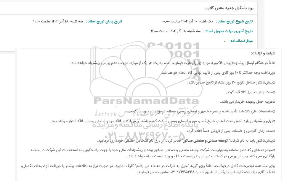 برای شرکت در مناقصه حتما از تصویر آگهی در سایت پارس نماد داده ها استفاده نمایید