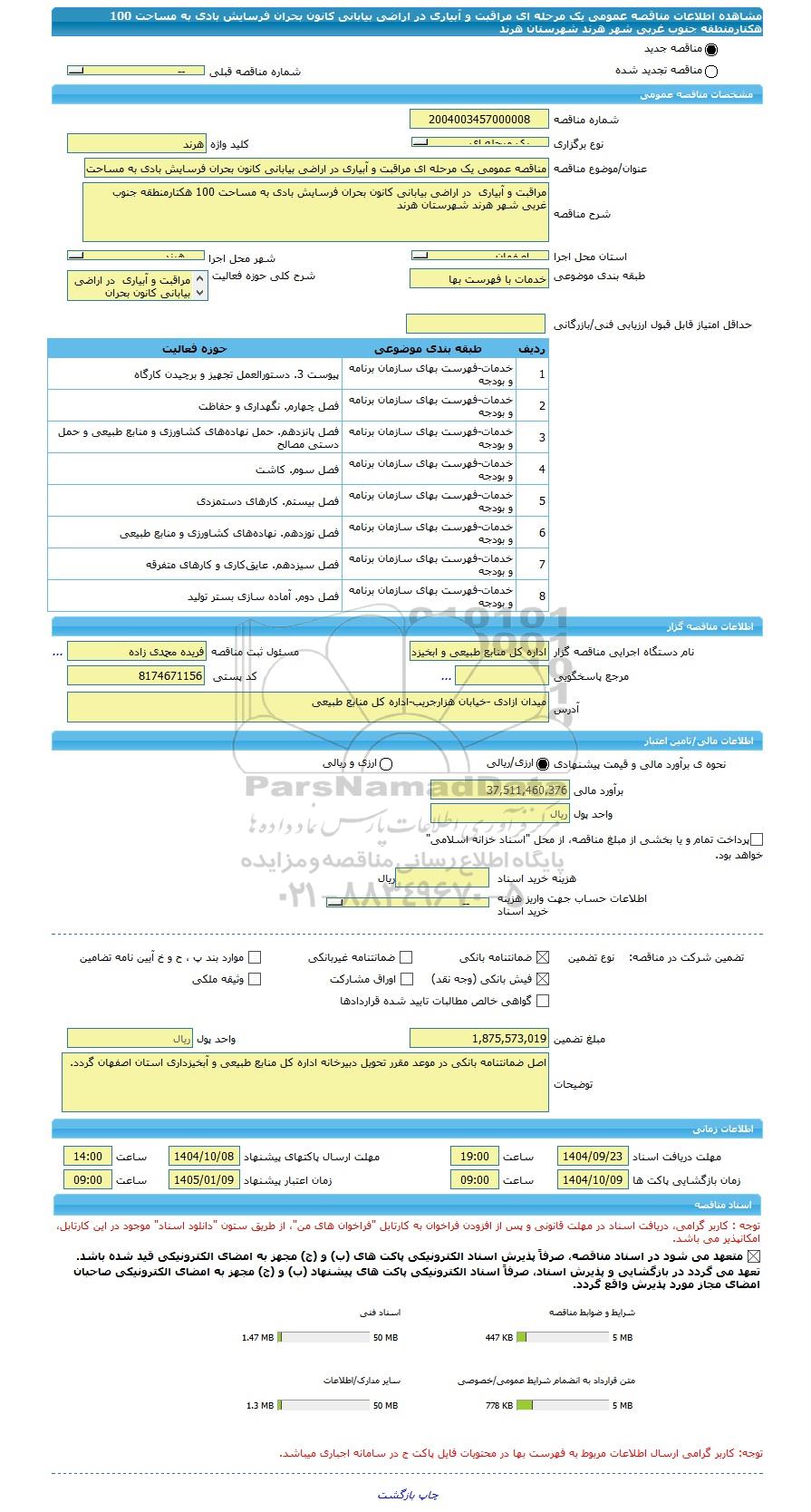 | مبلغ تضمین | 1,875,573,019 | واحد پول | ریال |