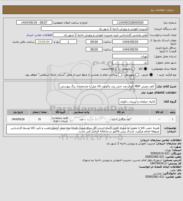 نام دستگاه خریدار:مدیریت اموزش و پرورش ناحیه 2 شهر ری