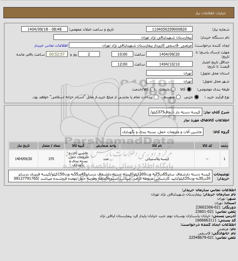 شرح کلی نیاز: کیسه دسته دار شفاف375کیلو/