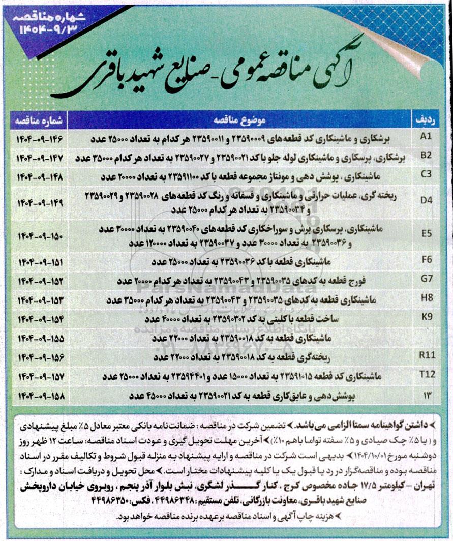 آگهی مناقصه عمومی - صنایع شهید باقری