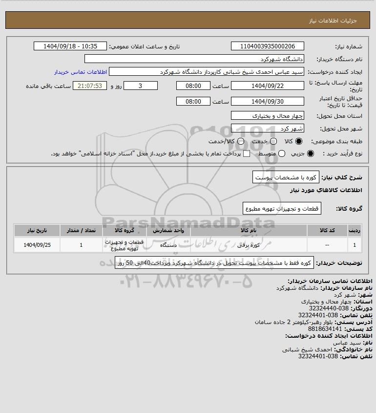 نام دستگاه خریدار:دانشگاه شهرکرد