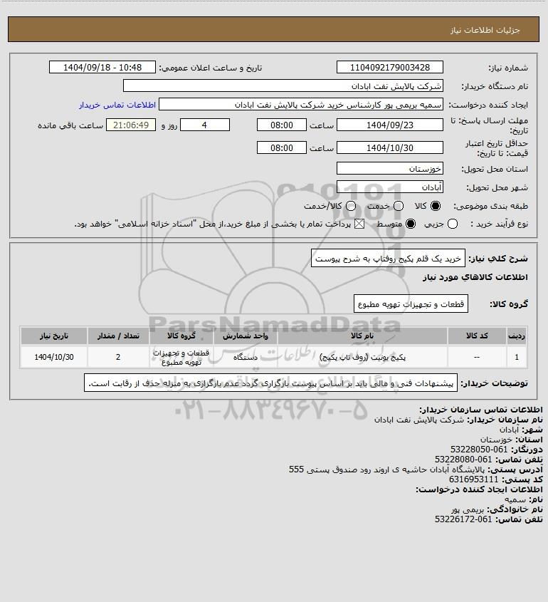نام دستگاه خریدار:شرکت پالایش نفت ابادان