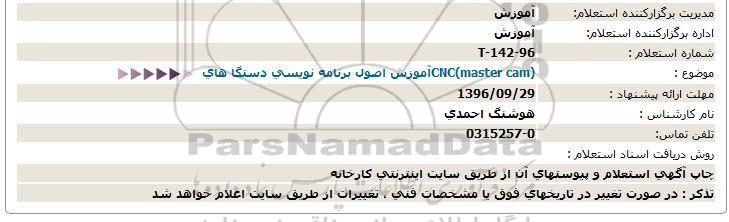 موضوع : آموزش اصول برنامه نویسی دستگاهای CNC(master cam)