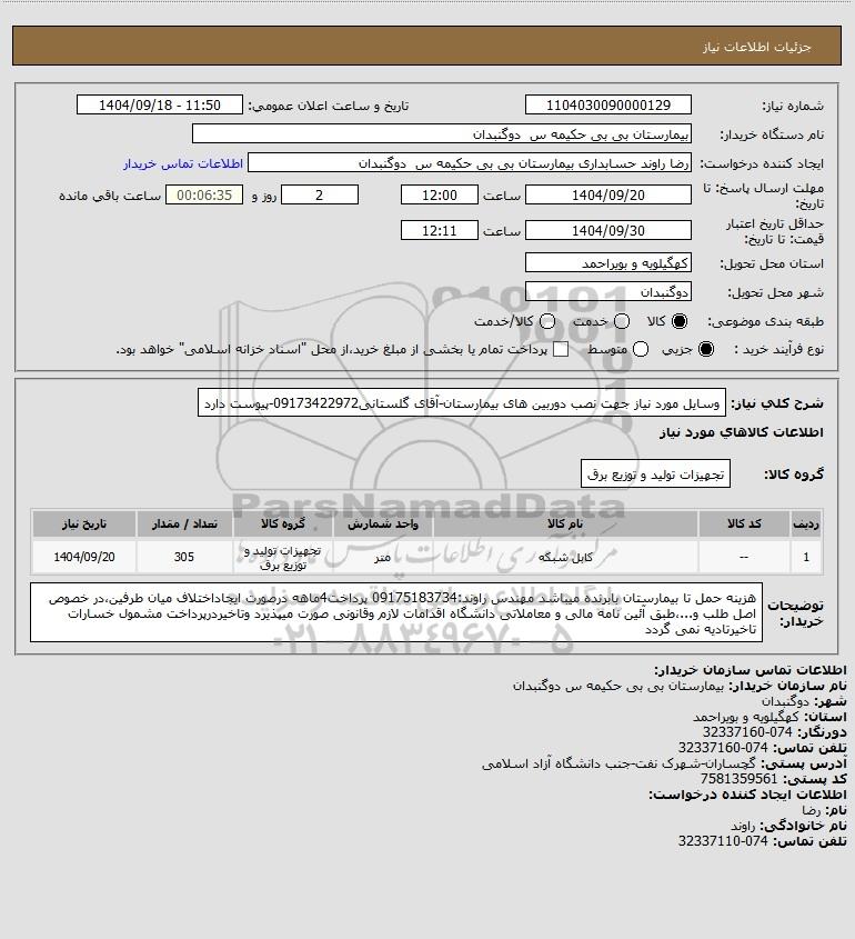 شرح کلی نیاز: وسایل مورد نیاز جهت نصب دوربین های بیمارستان-آقای گلستانی09173422972-پیوست دارد
