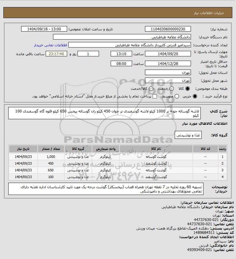 4 -- گوشت گوسفند کیلوگرم غذا و نوشیدنی 100 1404/09/23