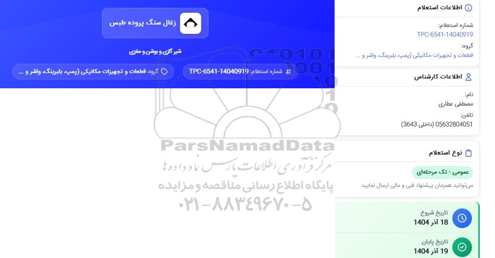 برای شرکت در مناقصه حتما از تصویر آگهی در سایت پارس نماد داده ها استفاده نمایید