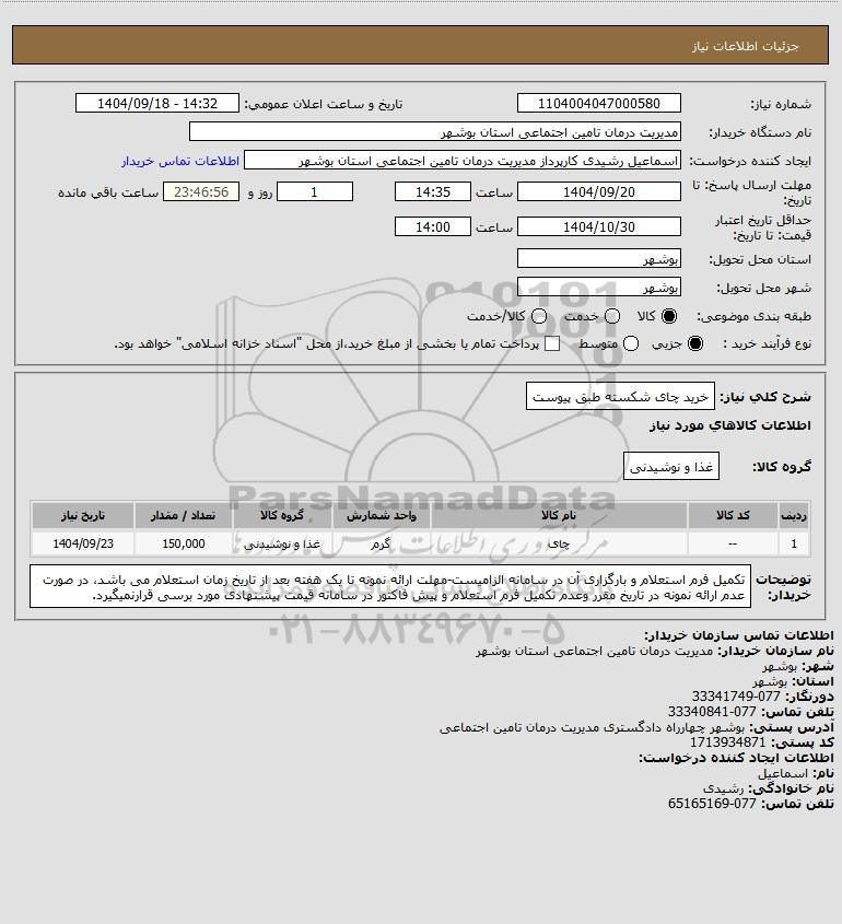 شرح کلی نیاز: خرید چای شکسته طبق پیوست