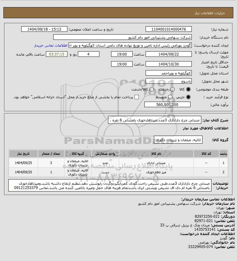 نام دستگاه خریدار:شرکت سهامی پشتیبانی امور دام کشور