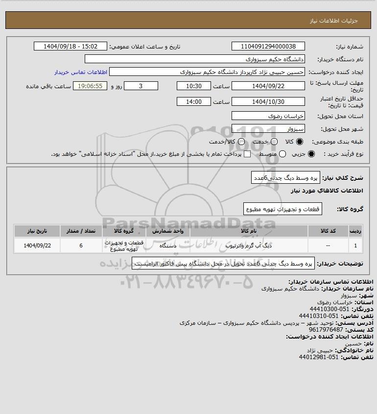 نام دستگاه خریدار:دانشگاه حکیم سبزواری