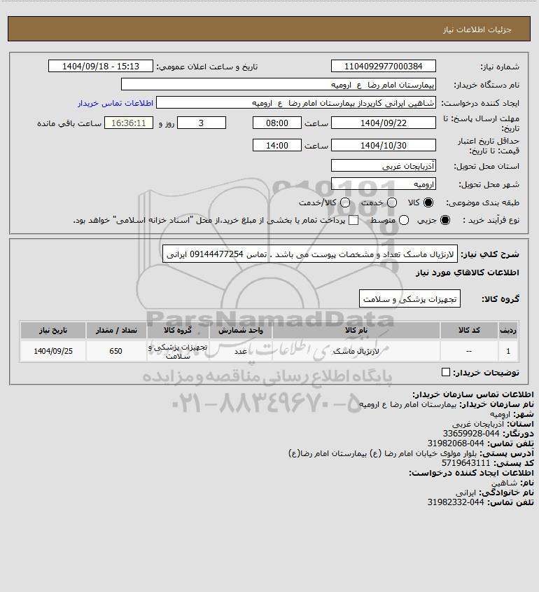 شرح کلی نیاز: لارنژیال ماسک تعداد و مشخصات پیوست می باشد . تماس 09144477254 ایرانی