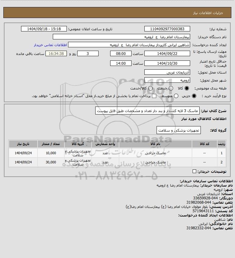 2 -- ماسک جراحی عدد تجهیزات پزشکی و سلامت 30,000 1404/09/24