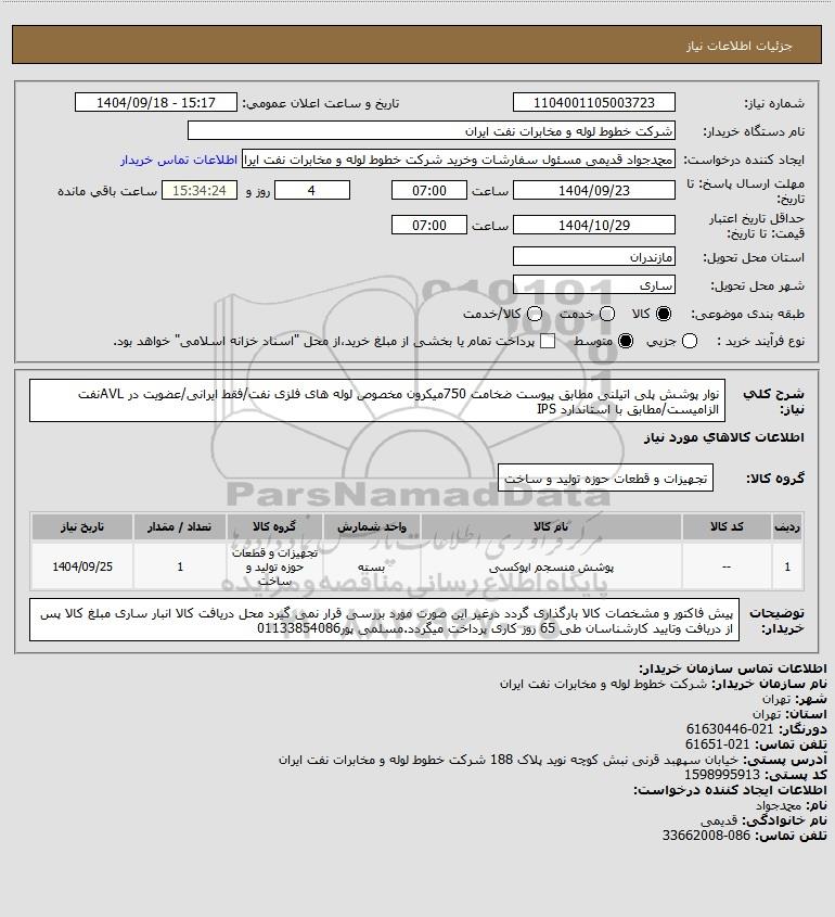 نام دستگاه خریدار:شرکت خطوط لوله و مخابرات نفت ایران