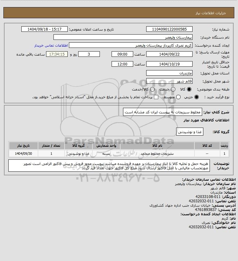 استعلام مخلوط سبزیجات به پیوست ایران کد مشابه است, استعلام مخلوط سبزیجات به پیوست ایران کد مشابه است
