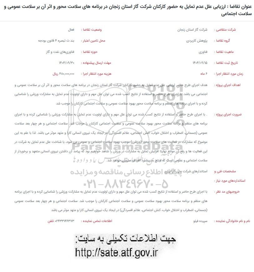فراخوان ارزیابی علل عدم تمایل به حضور کارکنان شرکت گاز استان زنجان در برنامه های سلامت محور و .... ؟