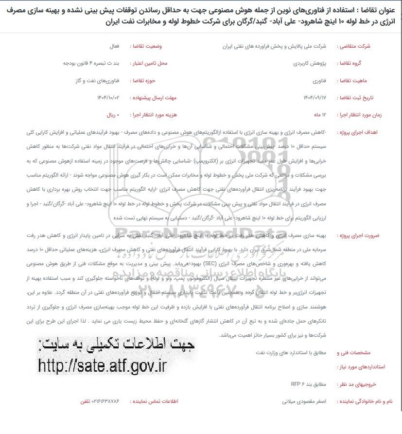 مهلت ارسال پیشنهاده : 1404.10.02