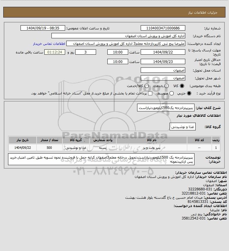 شرح کلی نیاز: پنیرپیتزادرجه یک500کیلوموردنیازاست