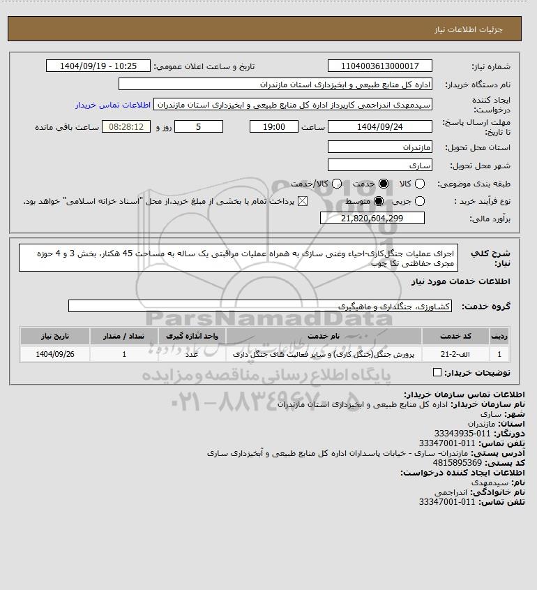 استعلام اجرای عملیات جنگل­کاری-احیاء وغنی سازی به همراه عملیات مراقبتی یک ساله به مساحت 45 هکتار بخش 3 و 4 حوزه مجری حفاظتی نکا چوب, استعلام اجرای عملیات جنگل­کاری-احیاء وغنی سازی به همراه عملیات مراقبتی یک ساله به مساحت 45 هکتار، بخش 3 و 4 حوزه مجری حفاظتی نکا چوب