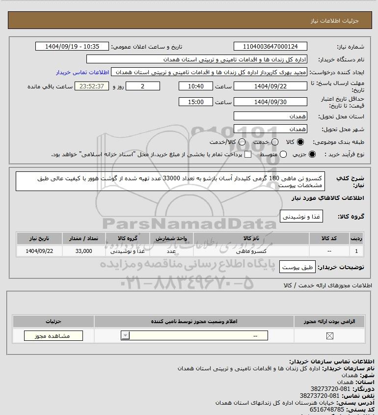 نام دستگاه خریدار:اداره کل زندان ها و اقدامات تامینی و تربیتی استان همدان