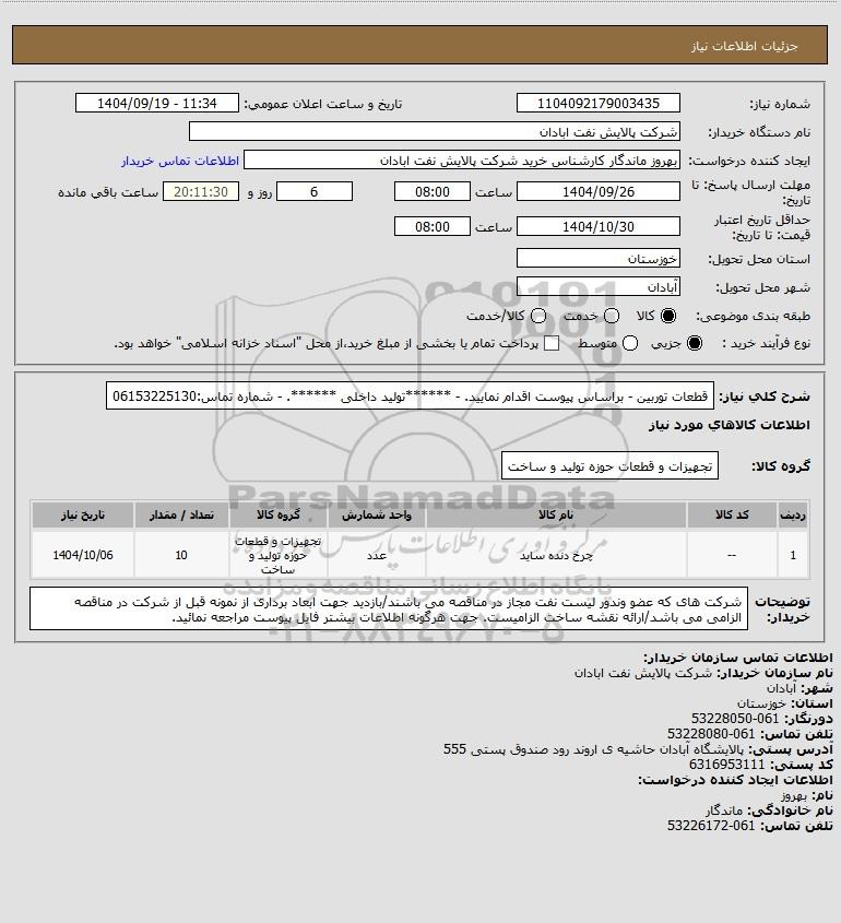 نام دستگاه خریدار:شرکت پالایش نفت ابادان