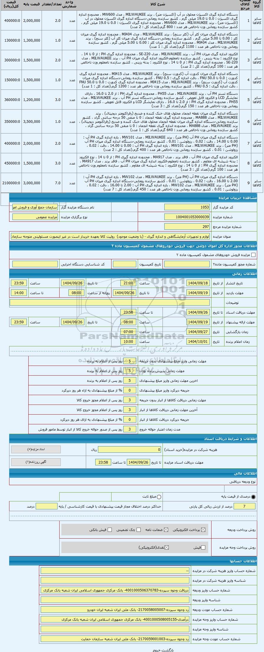 مزایده ، لوازم و تجهیزات آزمایشگاهی و اندازه گیری - (با وضعیت موجود)  روئیت کالا بعهده خریدار است در غیر اینصورت مسئولیتی متوجه