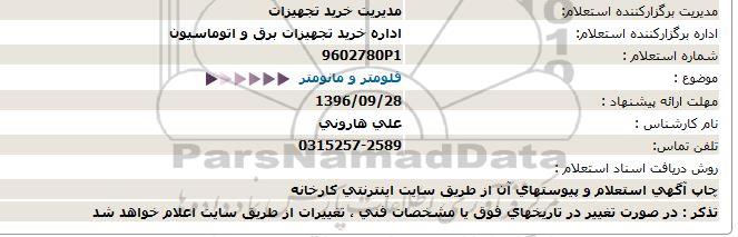 اداره برگزارکننده استعلام: اداره خرید تجهیزات برق و اتوماسیون