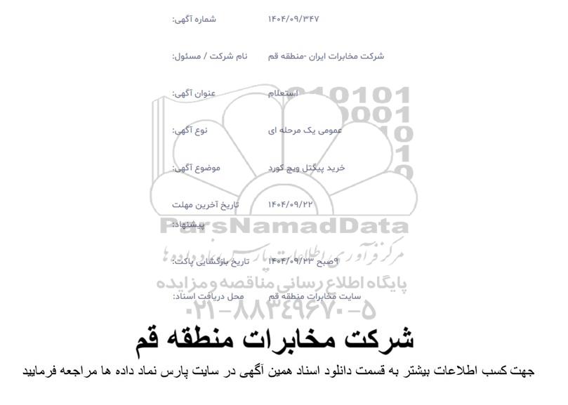 محل دریافت اسناد: سایت مخابرات منطقه قم