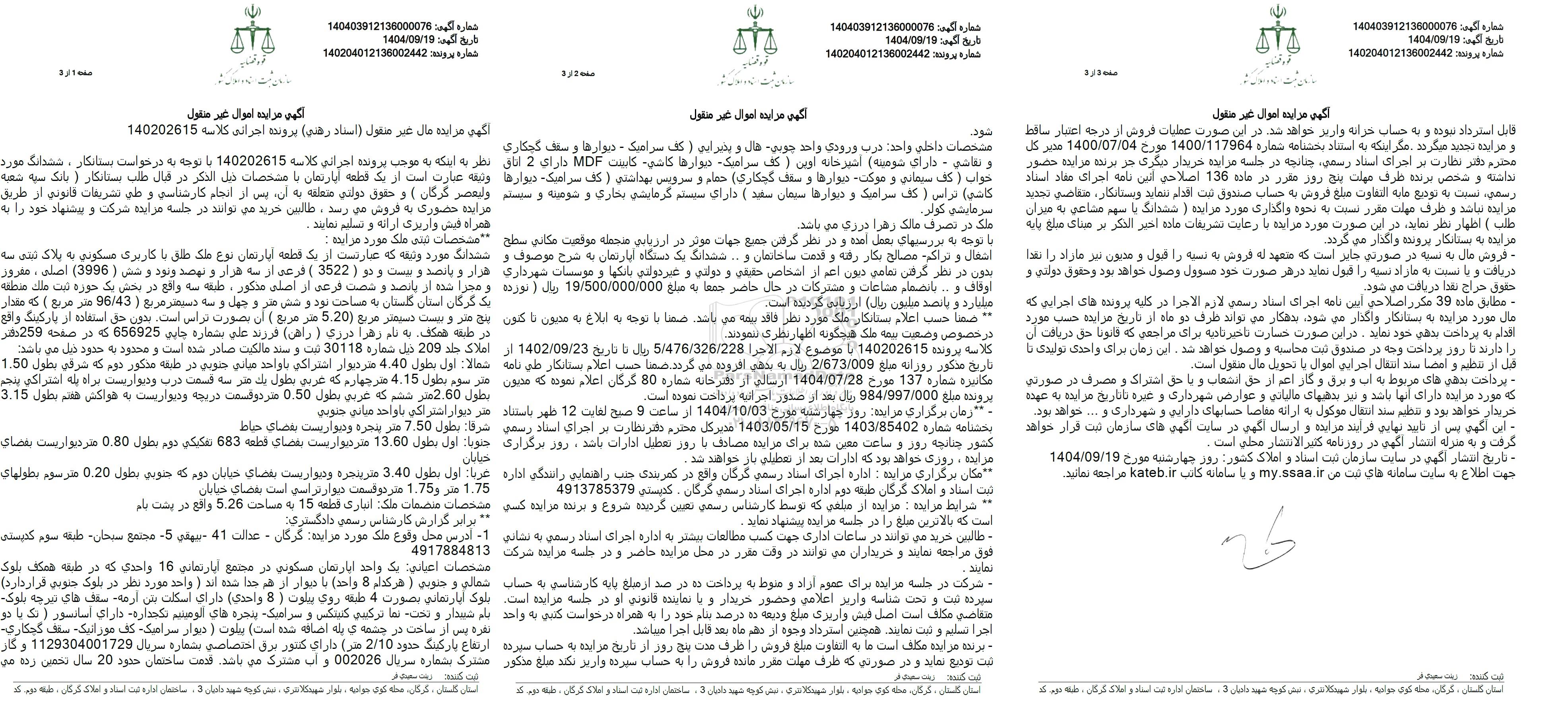 آگهی مزایده مال غیر منقول (اسناد رهنی) پرونده اجرایی کلاسه 140202615