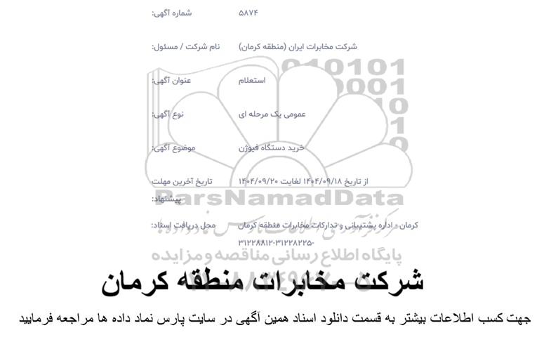 نام شرکت/ مسئول: شرکت مخابرات ایران (منطقه کرمان)