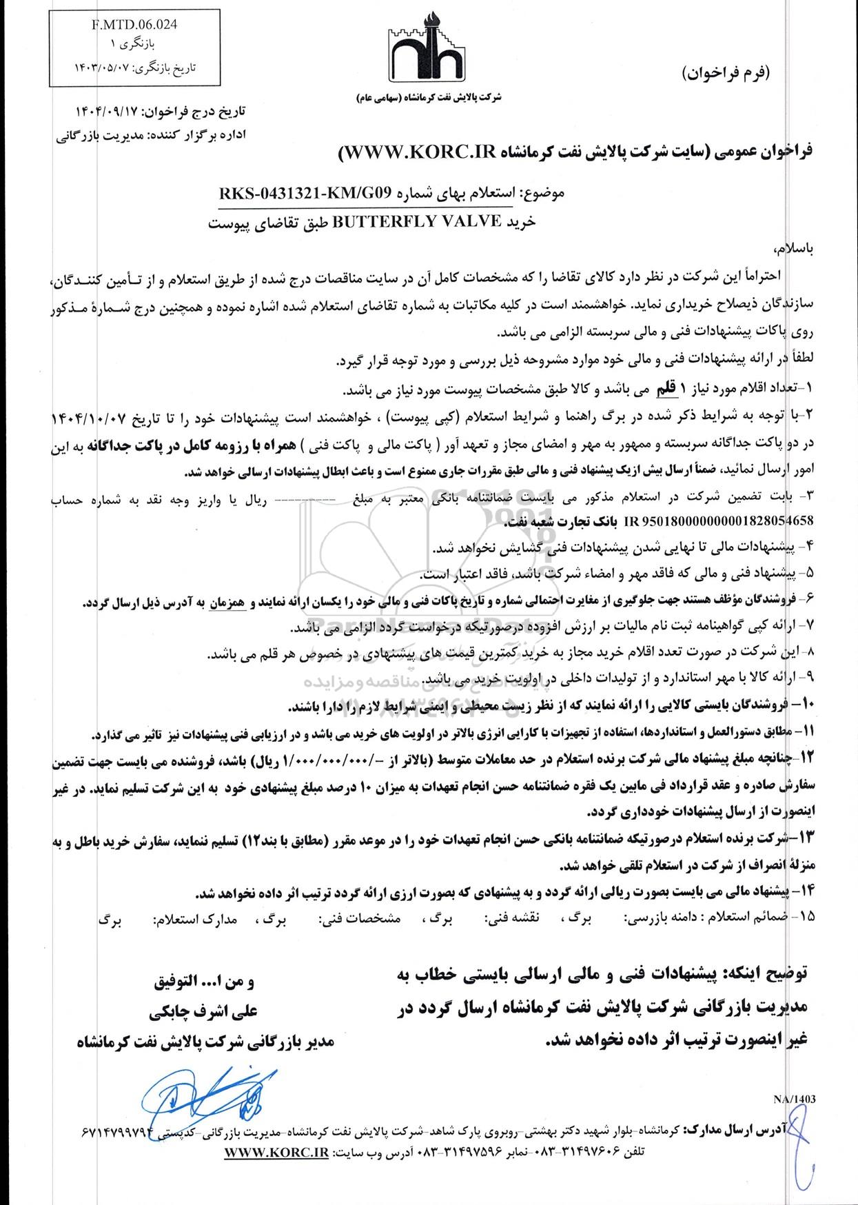فراخوان عمومی (سایت شرکت پالایش نفت کرمانشاه WWW.KORC.IR ) ؟