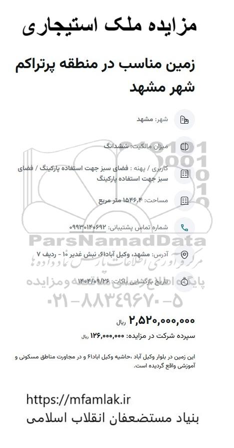 مزایده ملک استیجاری زمین مناسب در منطقه پرتراکم شهر مشهد ؟