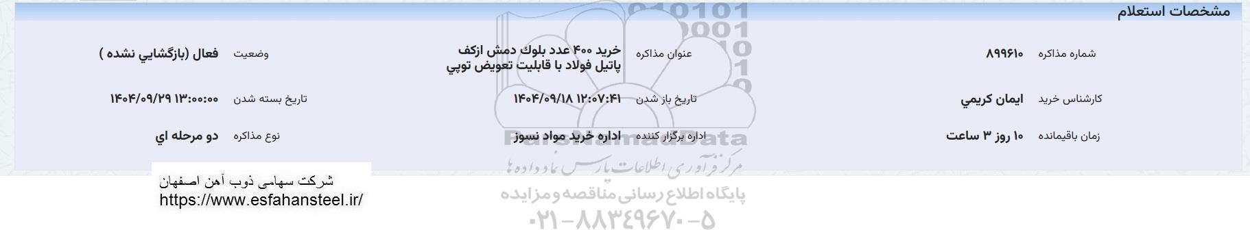 عنوان مذاکره خرید 400 عدد بلوک دمش ازکف پاتیل فولاد با قابلیت تعویض توپی