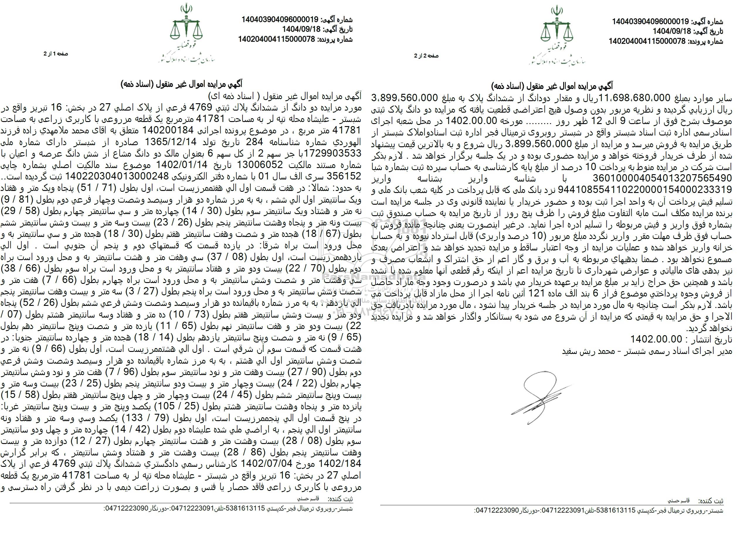 (آگهی مزایده اموال غیر منقول (اسناد ذمه)