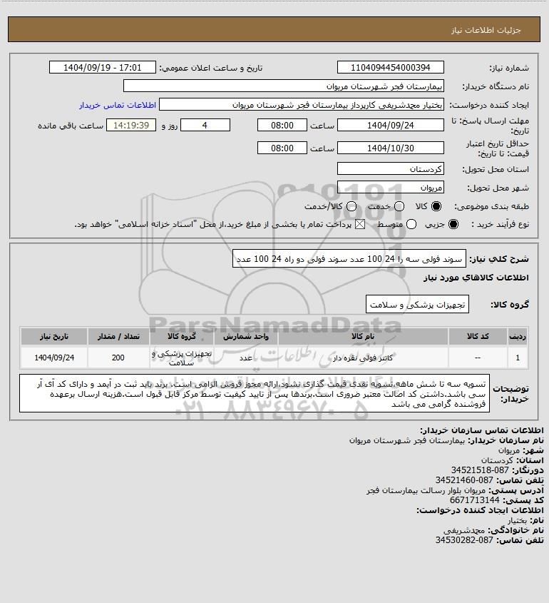 نام دستگاه خریدار:بیمارستان فجر شهرستان مریوان