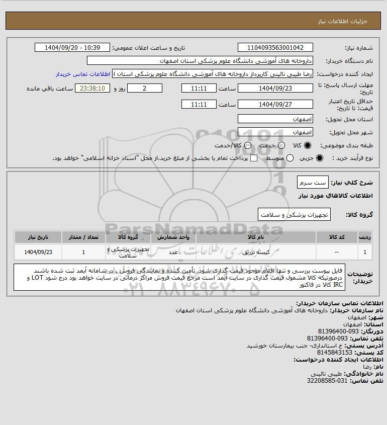 نام دستگاه خریدار:داروخانه های آموزشی دانشگاه علوم پزشکی استان اصفهان