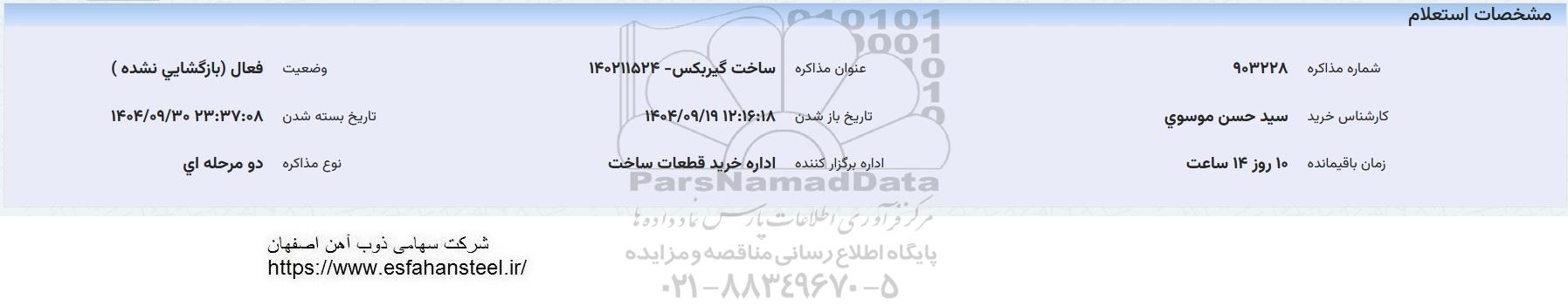 عنوان مذاکره : ساخت گیربکس 140211524