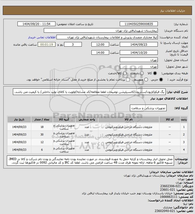 نام دستگاه خریدار:بیمارستان شهیدلبافی نژاد تهران