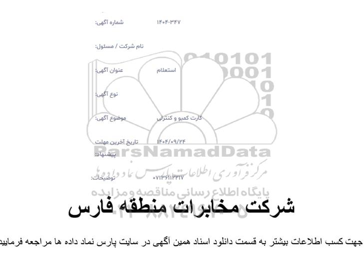 برای شرکت در مناقصه حتما از تصویر آگهی در سایت پارس نماد داده ها استفاده نمایید