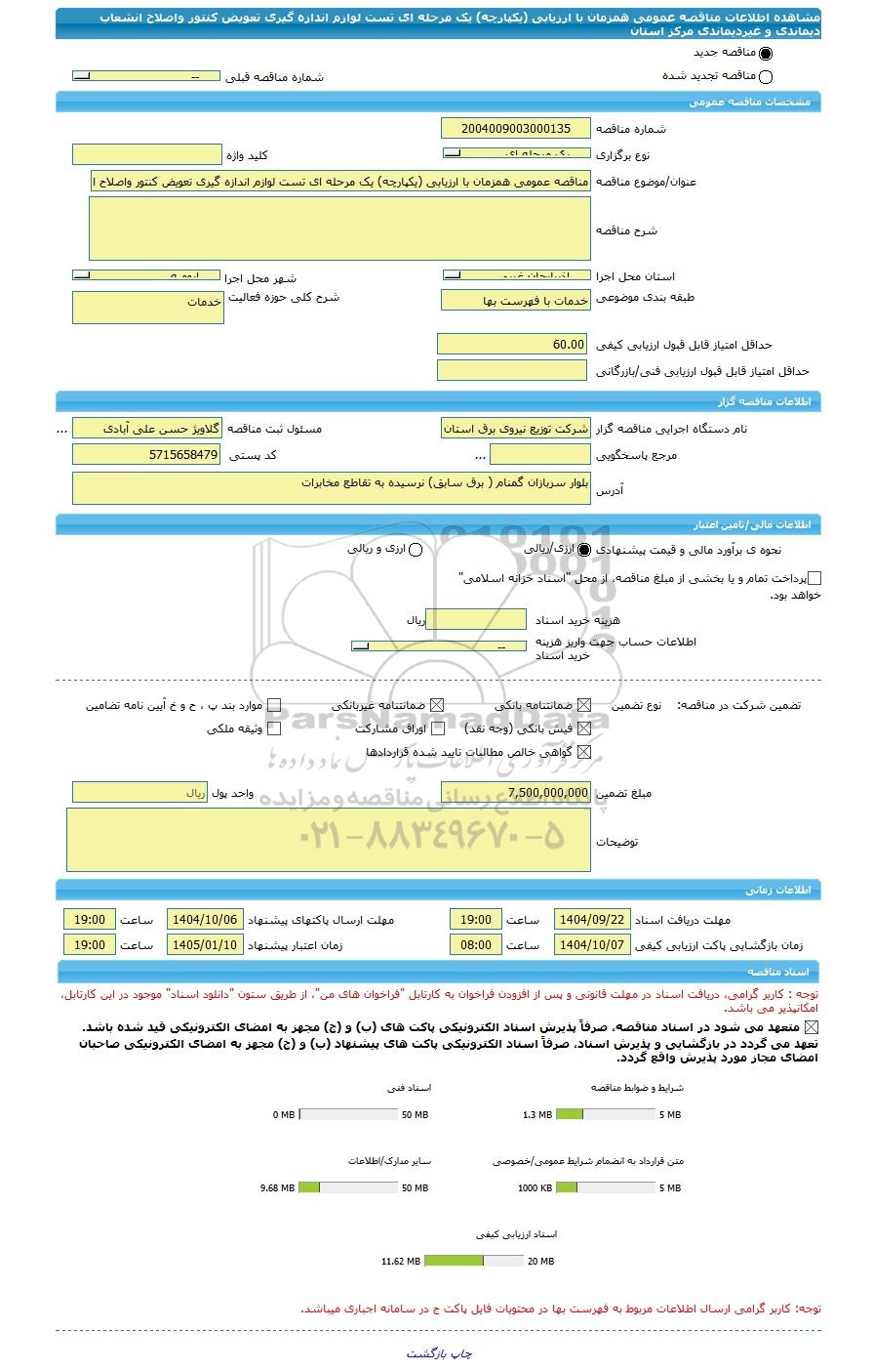 | مبلغ تضمین | 7,500,000,000 | واحد پول | ریال |