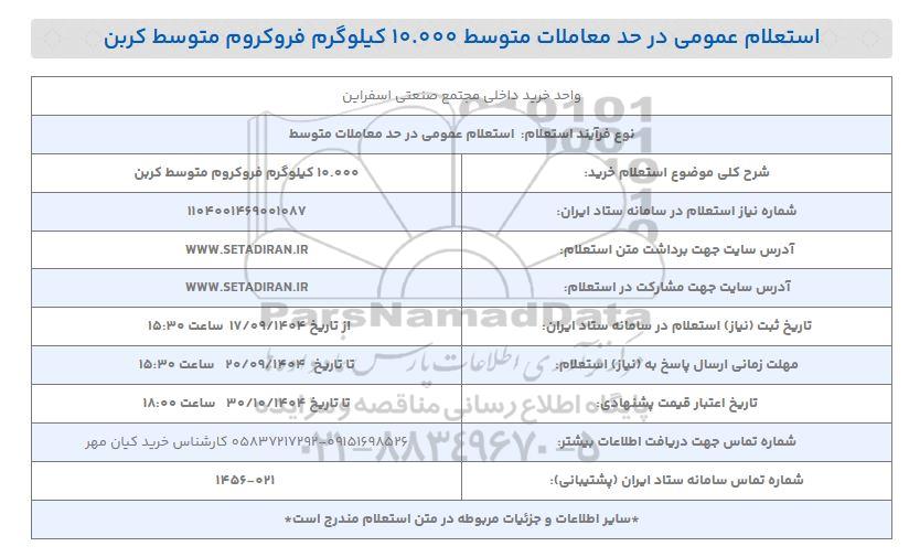 استعلام عمومی در حد معاملات متوسط 10.000 کیلوگرم فروکروم متوسط کربن
