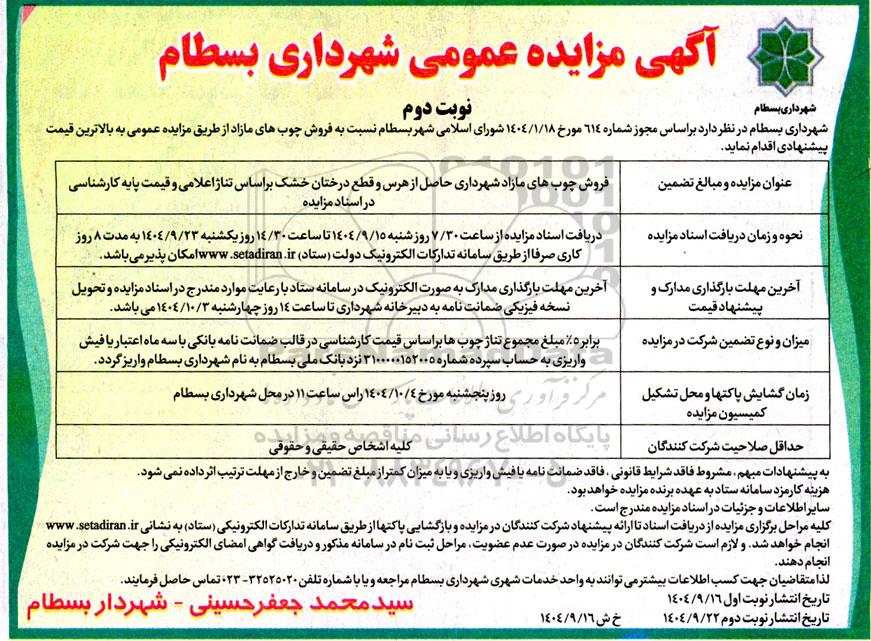 آگهی مزایده عمومی شهرداری بسطام نوبت دوم