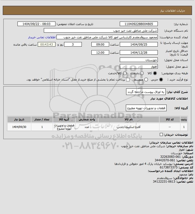 نام دستگاه خریدار:شرکت ملی مناطق نفت خیز جنوب