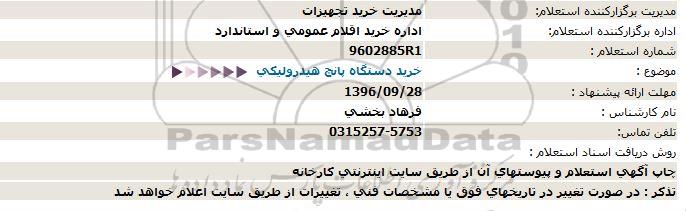 اداره برگزارکننده استعلام: اداره خريد اقلام عمومی و استاندارد