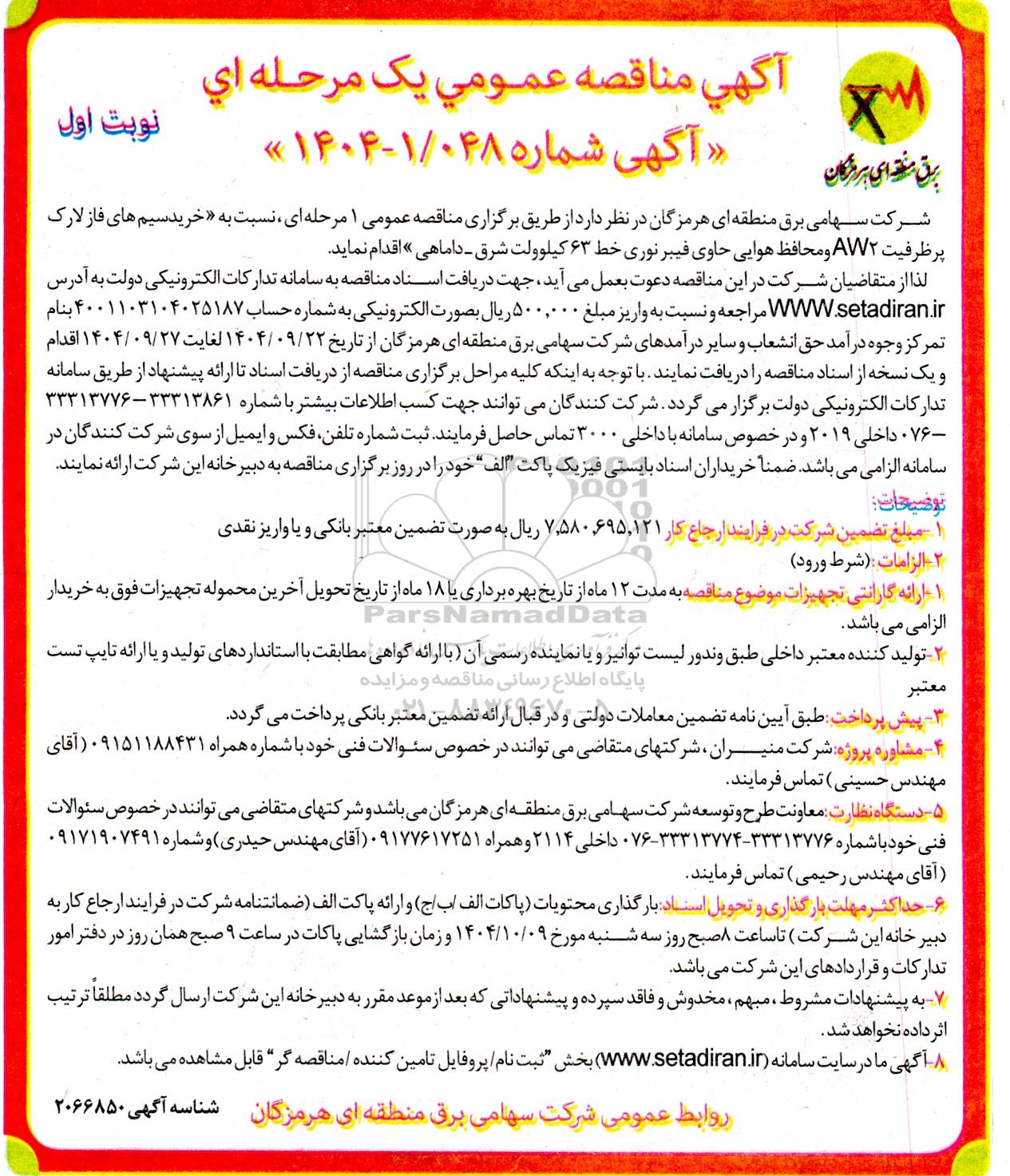 آگهي مناقصه عمومی یک مرحله اي آگهی شماره 1.048-1404؟