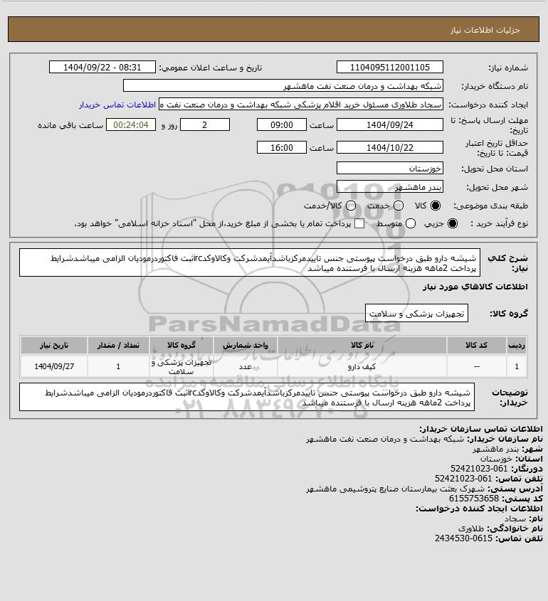 نام دستگاه خریدار:شبکه بهداشت و درمان صنعت نفت ماهشهر