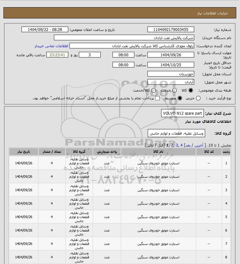 شرح کلی نیاز: VOLVO N12 spare part