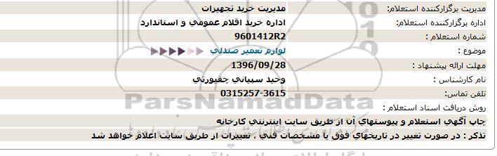 اداره برگزارکننده استعلام: اداره خرید اقلام عمومی و استاندارد