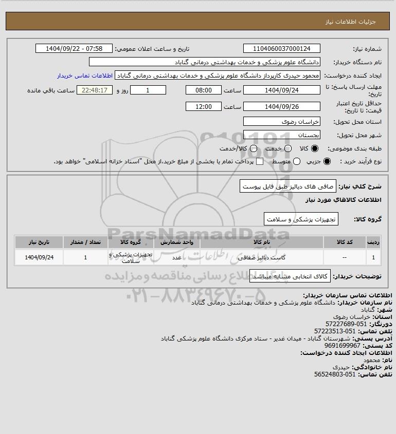 نام دستگاه خریدار:دانشگاه علوم پزشکی و خدمات بهداشتی درمانی گناباد