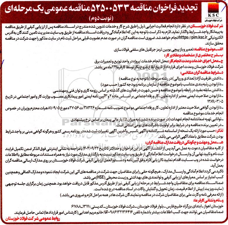 فراخوان تجدید مناقصه 52500533 عمومی دو مرحله ای - نوبت دوم