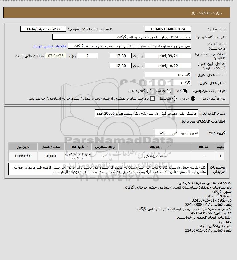 | 1 | -- | ماسک پزشکی | عدد | تجهیزات پزشکی و سلامت | 20,000 | 1404/09/30 |